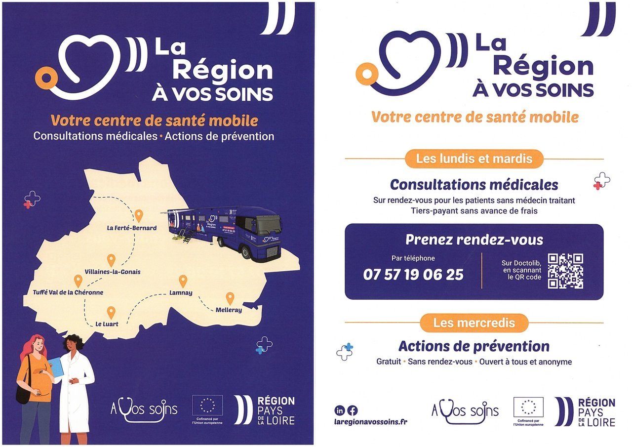 Voici le calendrier de présence du centre de soins mobile La Région A vos soins sur vos communes, je vous transmets le calendrier de passage jusqu'au mois de juin 2026 inclus.